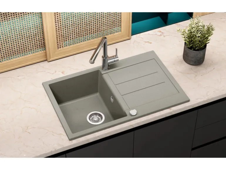 Helika Spülen werden aus natürlichem Quarzsand gefertigt, um einen hochwertigen Look und das Gefühl von echtem Stein zu bieten. Das Silicsana Granitmaterial besteht aus 80 % natürlichem Quarzsand und 20 % einzigartigem Kunstharz. Die Oberfläche ist glatt, homogen und leicht zu reinigen – perfekt für den täglichen Gebrauch in Ihrer Küche.