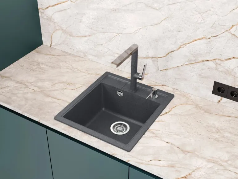 Dank der glatten Oberfläche des Silicsana Granits sind Helika Spülen leicht zu reinigen. Die sanft abgerundeten Ecken ermöglichen eine einfache Reinigung nach Gebrauch – einfach einen weichen Schwamm oder ein Tuch verwenden, um die Oberfläche abzuwischen.