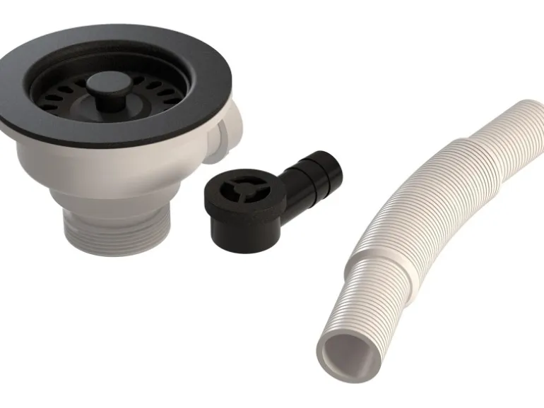 Ab-und Überlaufgarnitur schwarz matt für Einzelbecken