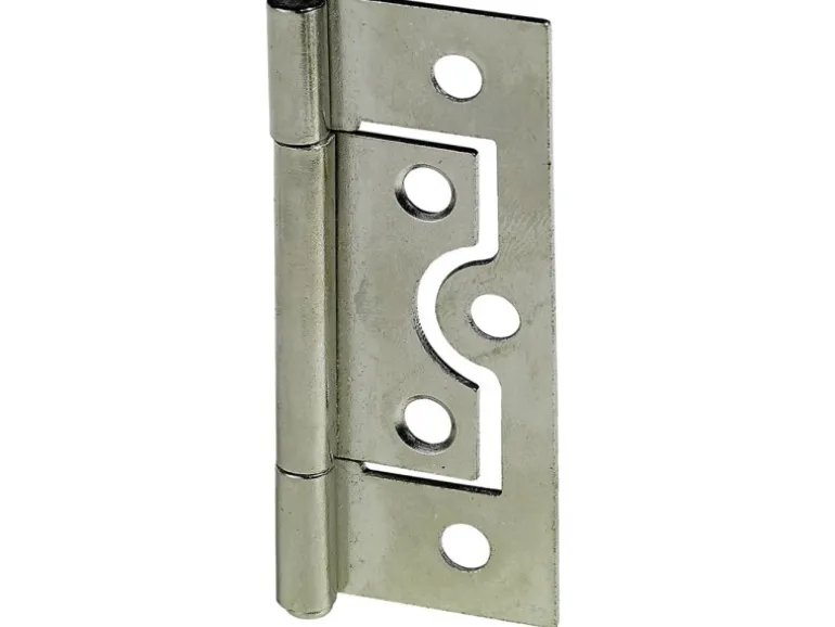 Scharniere für Lamellentüren und leichte Schranktüren mit stumpfem Anschlag, vernickelt. Geeignet für innenliegende und vorliegende Türen.