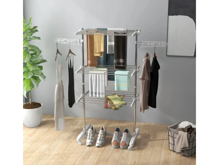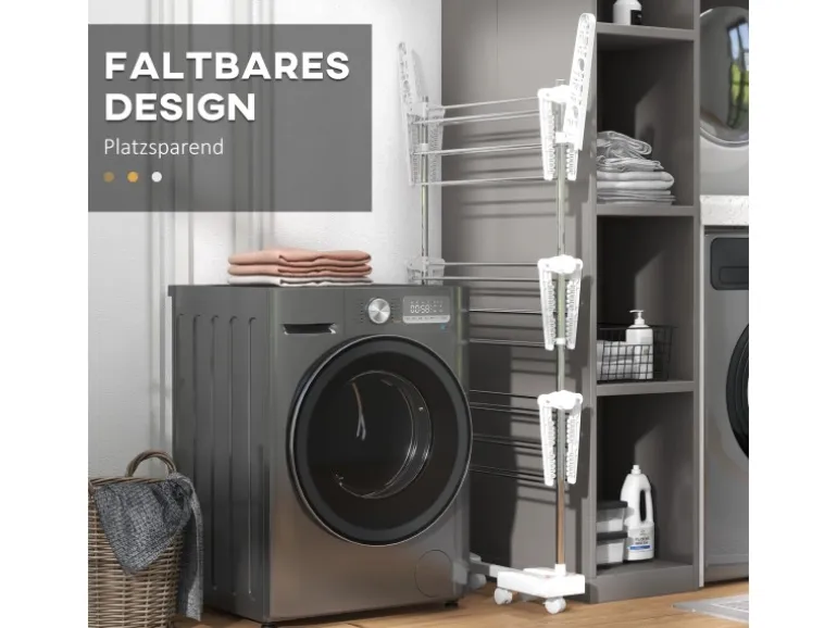 HOMCOM Wäschetrockner mit Rollen 3 Ebenen Klappbar Stahl Weiß 80/142 x 55 x152cm