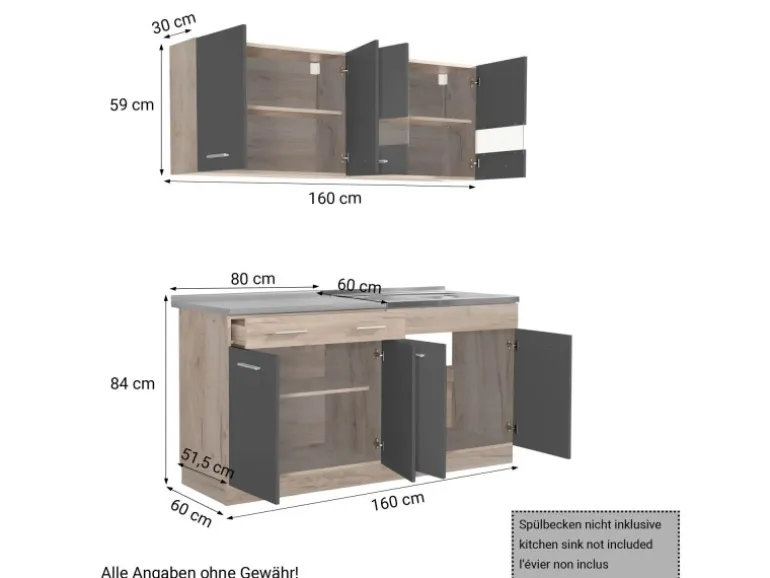 Außenmaße Unterschrank (BxHxT): 160 x 84 x 60 cm