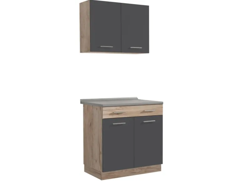 Küchenregale mit Arbeitsplatte im modernen, hochwertigen Design in Grau und Eichenholzoptik