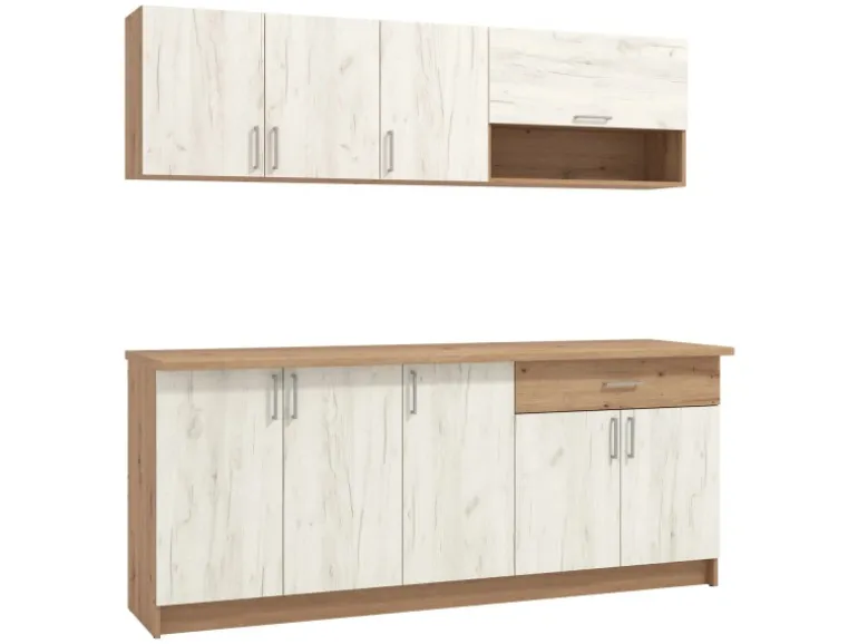 Küchenregale mit Arbeitsplatte im modernen, hochwertigen Design in weißer und natürlicher Eichenholzoptik