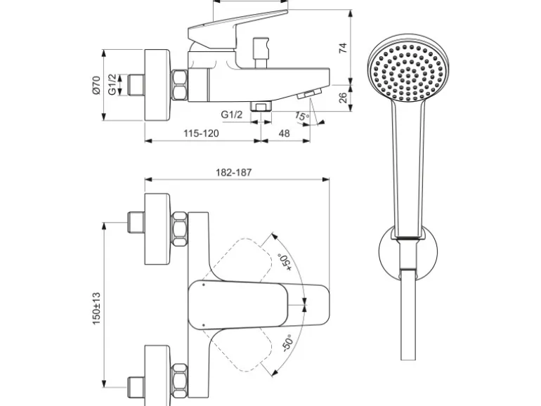 – Umschaltung automatisch von Brause auf Wanne.