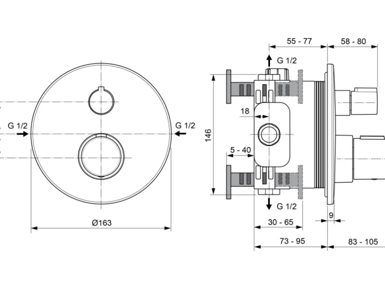 Die neuen CeraTherm T Thermostate überzeugen durch wegweisende Technologie in Verbindung mit einem besonders schlanken Armaturenkörper. Die von Grund auf neu entwickelte FirmaFlow-Thermostatkartusche bietet kurze Reaktionszeiten und sichere Performance. Dank ihres kompakten Aufbaus verfügen alle CeraTherm T Thermostate über die Cool Body Technologie, die ein Aufheizen des Thermostatkörpers unterbindet. Die separat erhältliche Ablage zum Aufklipsen sorgt für zusätzlichen Stauraum. Besonders elegant sind auch die neuen CeraTherm T Duschsysteme aus dem Idealrain Programm.