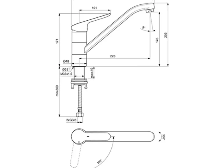 – Befestigung: Von unten mittels solider Schaftverschraubung
