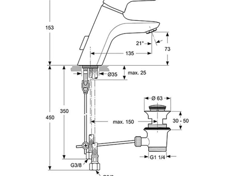 – Zugknopf mit Ablaufgarnitur: G1 1/4