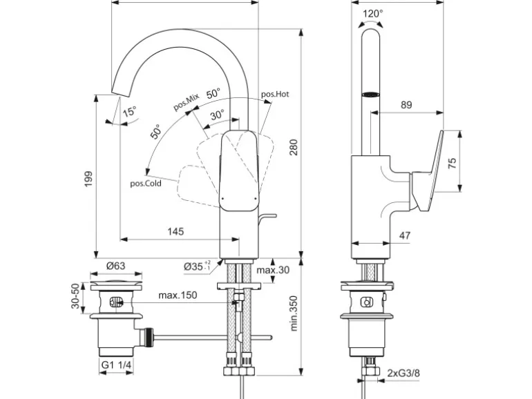 – Auslaufhöhe 199 mm.