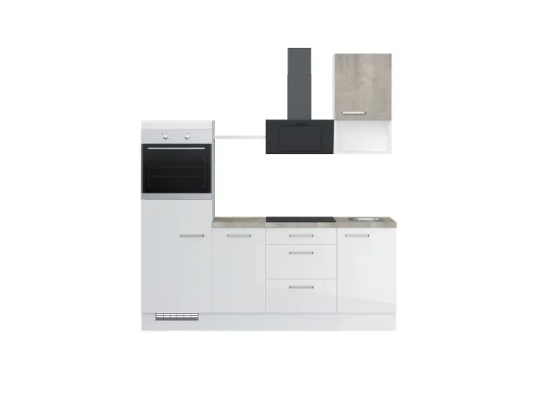 Weiß Hochglanz mit Beton-Optik natur