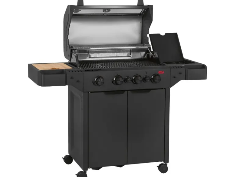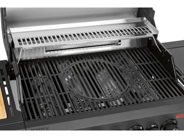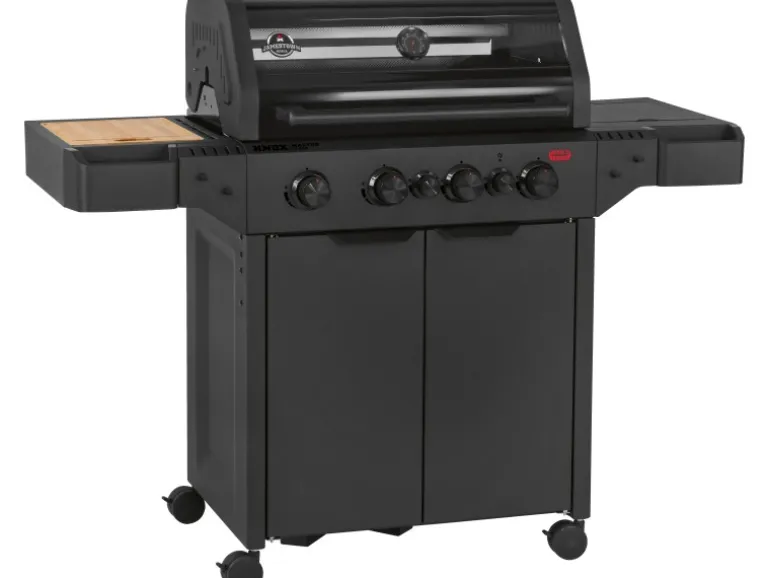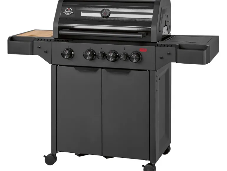 Der Jamestown Gasgrill Knox Masterclass 4-Brenner ist die ultimative Outdoor-Küche für anspruchsvolle Grillfans. Dieser fahrbare Gasgrill ist ausgestattet mit vier getrennt regelbaren Edelstahlbrennern inklusive einer speziellen Devil’s Zone, die dir mit bis zu 800 °C extreme Hitze für das perfekte Anbraten (Searing) deiner Steaks liefert. Zusätzlich sorgt der Infrarot-Heckbrenner dafür, dass Drehspießgerichte (Rotisserie) gleichmäßig und saftig garen – ideal für ein knuspriges Hähnchen oder einen Rollbraten. Die massive Grillfläche aus Gusseisen (73 cm x 43 cm) speichert die Hitze hervorragend und besitzt einen kompatiblen Einsatz für gängige modulare Grillsysteme, was dir maximale Flexibilität beim Grillen bietet.