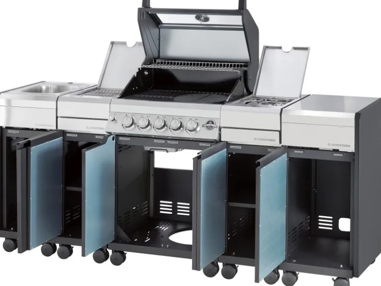 Nutze die verschiedenen Erweiterungsmodule (separat erhältlich) für deinen Jamestown Knox Gasgrill zur individuellen Zusammenstellung deiner persönlichen Outdoor-Küche. So kannst du deine Outdoor-Küche ganz nach deinen Wünschen gestalten und deinen Grillbedürfnissen anpassen.