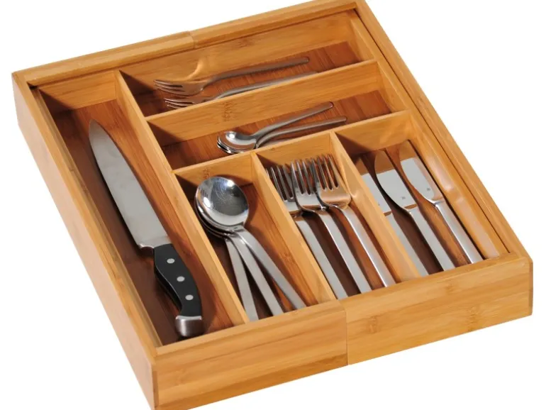 Auf diese Weise kann die Größe des Kesper Besteckkastens je nach Bedarf beliebig angepasst werden, sodass er problemlos in alle handelsüblichen Küchenschubladen passt.