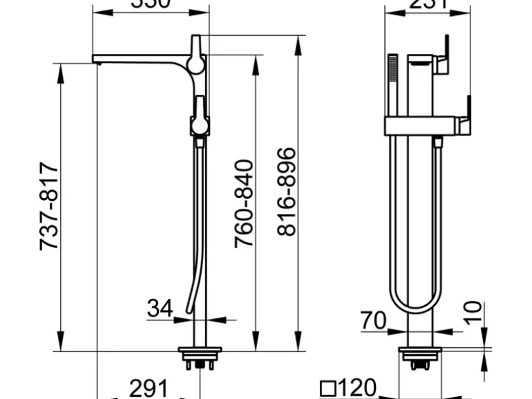 Edle Wannenbatterie in Chrom für freistehende Badewannen