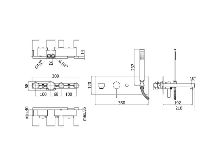 Handbrause, Brauseschlauch 150 cm und Brausehalter