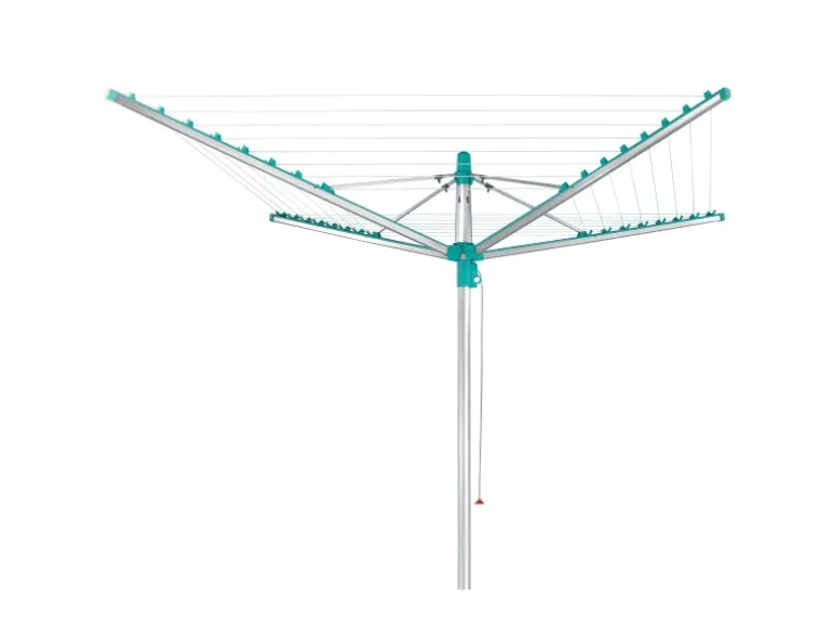 Das Schließen und Öffnen funktioniert ohne Kraftaufwand. Um die Leinen aufzuspannen, ziehen Sie an der Aufzugsleine. Beim Schließen der Wäschespinne werden sie automatisch wieder eingezogen. Auf Grund kleiner Rasteinheiten bleiben die Leinen auch nach jahrelangem Gebrauch noch straff gespannt.