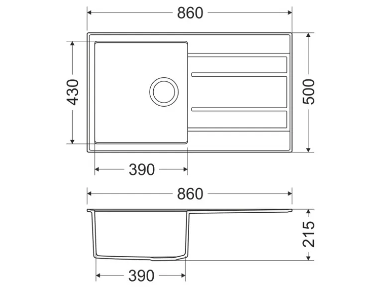 Maße (H x B x T): 86 cm x 50 cm x 21,5 cm, Breite des Beckens: 39 cm