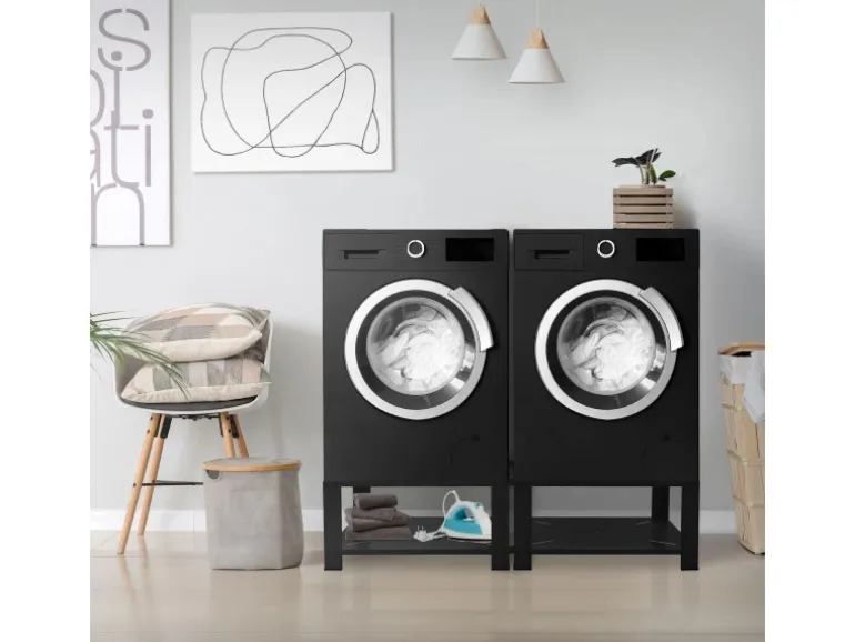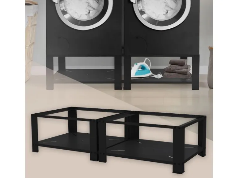 Erhöhe deine Waschmaschine und Trockner auf eine ergonomische Arbeitshöhe von 32 cm mit unserem 2er Set Waschmaschinen-Untergestellen. Dadurch wird das Beladen und Entnehmen der Wäsche komfortabler.