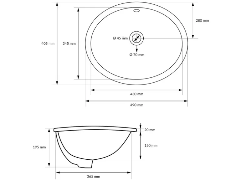 Dieses Modell ist vor Allem als Einbau Waschbecken geeignet und verfügt über die Standardmaße für Ablaufgarnituren. Die Standard-Anschlüsse für Armatur und Ablauf ermöglichen es dir, dein Waschbecken nach deiner Wahl auszustatten und ihm so deinen ganz eigenen Stil zu verleihen.