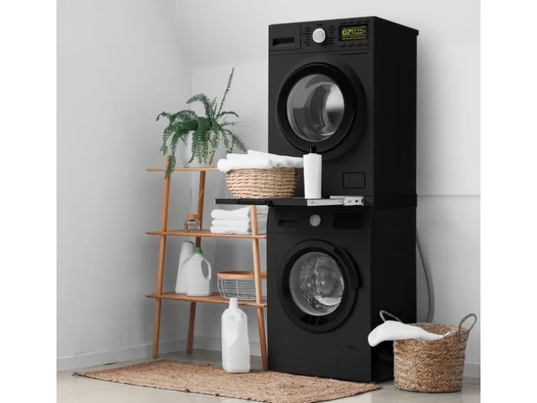Dieser Zwischenboden ist einfach zu installieren und ermöglicht dir eine extra Ablagefläche beim Wäsche waschen. Der Zwischenboden wird zwischen Waschmaschine und Trockner eingesetzt. Dieser beeinträchtigt nicht die Stabilität der beiden Waschgeräte. Der Verbindungsrahmen ist durch seine Größe universell einsetzbar und passt zu fast jeder Waschmaschine und Trockner.