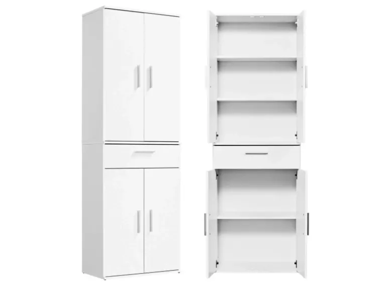 Das Produkt CLEVERER STAURAUM! Unser Schubladenschrank in 2 Größen vereint durch mehrere Fächer und Schubkasten Elemente aus Kommode & Nutzschrank miteinander, die dir viel Platz bieten. Individualisierbar mit weiteren Einlegeböden ‚Einleger‘ mit +4 Positionierungsmöglichkeiten. MADE IN GERMANY! Die Schränke werden aus Spanplatte mit beständiger Kunstharzbeschichtung & Kunststoffgriffen in NRW hergestellt. Durch die kompakten Maße dient der moderne Hoch- & Midischrank als Küchenschrank, Wäscheschrank, Büroschrank oder Allzweckschrank.