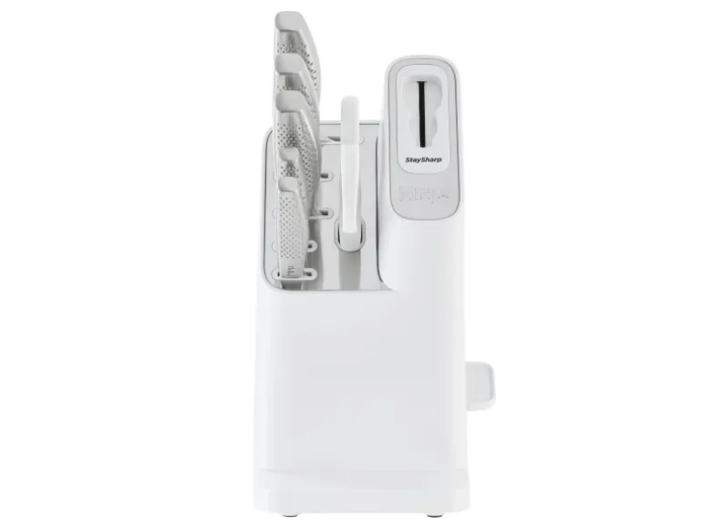 Die StaySharp-Technologie macht Schluss mit dem Chaos und dem Rätselraten beim Schärfen. Zum Schärfen genügt es, den Schärfhebel ein paar Mal auf und ab zu bewegen, um die Klinge wieder messerscharf zu machen. Traditionelle Methoden wie Schleifsteine erfordern Geduld und Übung und können bei falscher Anwendung die Messer beschädigen. Die Ingenieure haben den Prozess vereinfacht, indem sie den Schleifer in einem optimalen Winkel positioniert haben, um die Schärfe jedes Messers in Sekundenschnelle wiederherzustellen.