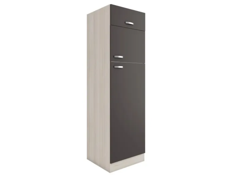 Die Serie Faro220 ist mit der Kombination aus Frontfarbe in Anthrazit und Korpus in Akazie Nachbildung perfekt abgestimmt. Die gebürsteten Metallgriffe runden den Look ab und machen Ihre Küche zu einem echten Hingucker.