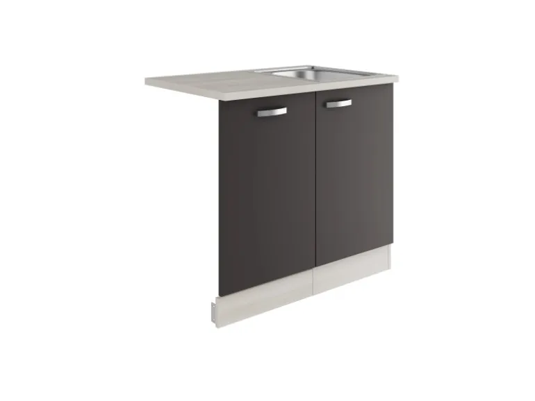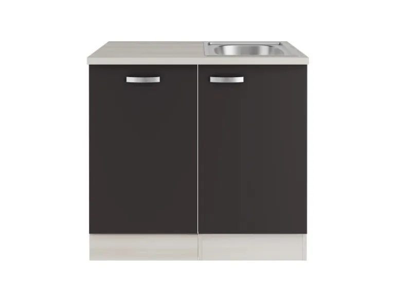 Die Serie Faro220 ist mit der Kombination aus Frontfarbe in Anthrazit mit Korpus und Arbeitsplatte in Akazie Nachbildung perfekt abgestimmt. Die gebürsteten Metallgriffe runden den Look ab und machen Ihre Küche zu einem echten Hingucker.