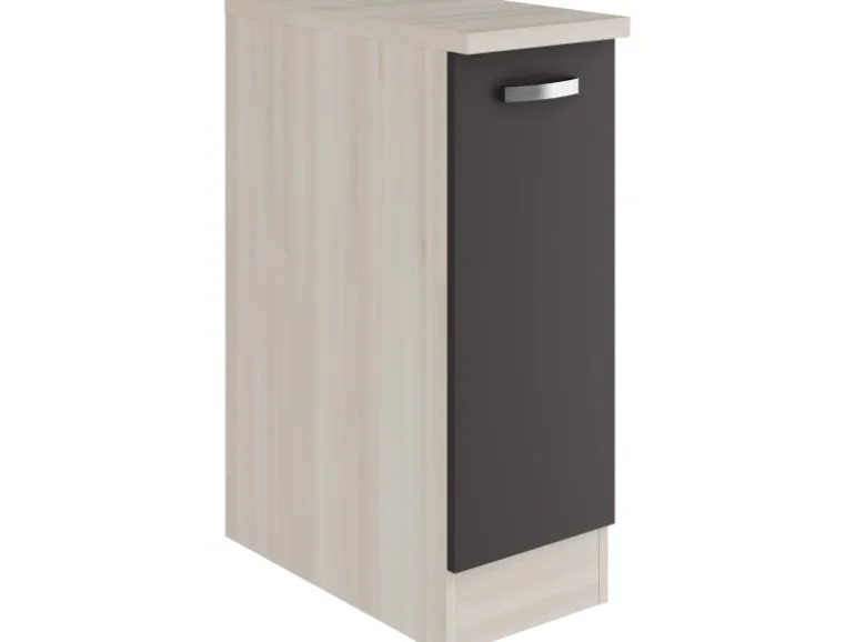 Die Serie Faro220 ist mit der Kombination aus Frontfarbe in Anthrazit mit Korpus und Arbeitsplatte in Akazie Nachbildung perfekt abgestimmt. Die gebürsteten Metallgriffe runden den Look ab und machen Ihre Küche zu einem echten Hingucker.