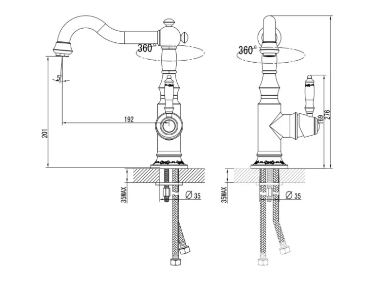 – Diese Mischbatterie kann sowohl als Küchenarmatur oder durch ihre geringe Höhe als Waschtischarmatur verwendet werden.