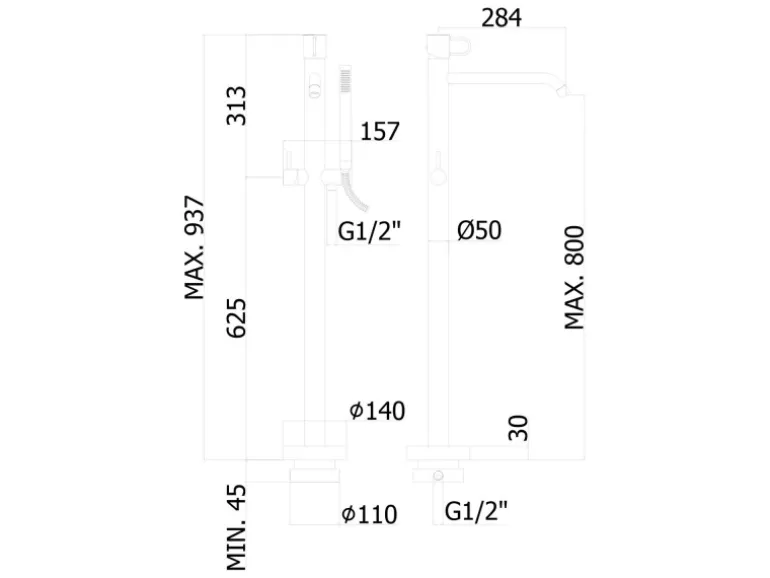 Perfekte Abmessungen für die Kombination mit freistehende Wannen
