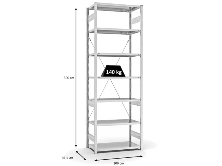 Das Regal ermöglicht zudem eine flexible Anpassung der Regalböden, indem sie schraublos in Abständen von 25 mm in der Höhe verstellt werden können. Die schnelle Steckmontage erleichtert die einfache und unkomplizierte Einrichtung des Regalsystems.