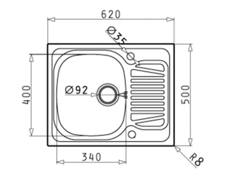 Spülenmaß: 62 cm x 50 cm x 15 cm