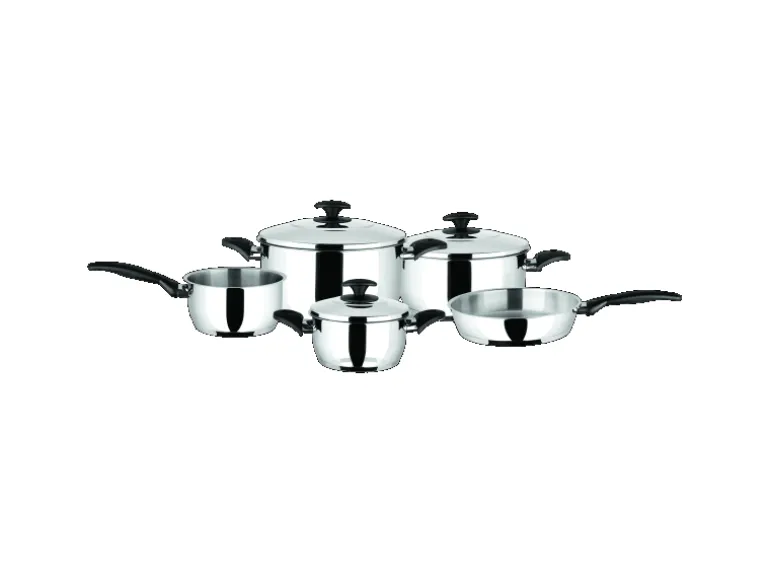 Das achtteilige Kochtopf-Set Gourmet von Pyramis eignet sich ideal als Einstieg für die junge Küche bei einem ausgezeichneten Preis-Leistungsverhältnis. Die Töpfe sind aus hochwertigem Chrom-Nickel-Stahl gefertigt und verfügen über einen schweren Boden mit einer 3 mm starken ferritischen Kapsel. Das Set ist für alle Arten von Kochfeldern (Induktion, Gas, elektrische Kochplatten) geeignet.