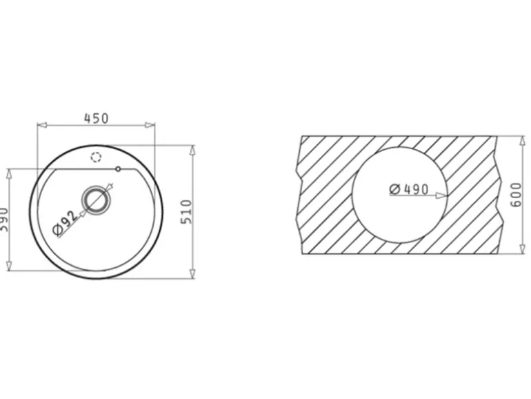 Spülenmaß: Ø 51 cm x 20,5 cm