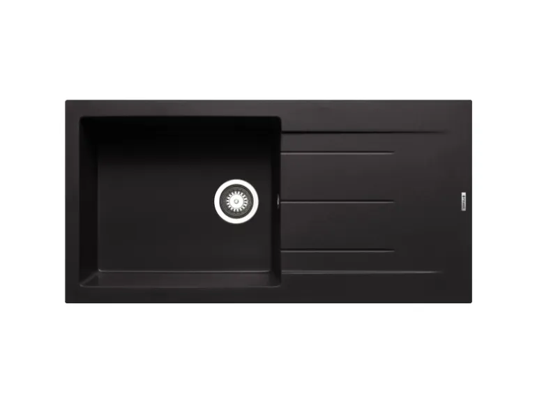 Des Weiteren ist die Spüle mit einem 88,9 mm (3,5″) Drehexcenter und einem Überlauf im Becken ausgestattet. Die glatte Oberfläche der zu 80 % aus Quarz gefertigten Spüle lässt sich einfach reinigen. Das mit Silberionen angereicherte Material macht die Oberfläche hygienisch und eignet sich für den direkten Kontakt mit Lebensmitteln. Die Einbauspüle ist reversibel und kann sowohl mit linksseitigem als auch mit rechtsseitigem Becken eingebaut werden.