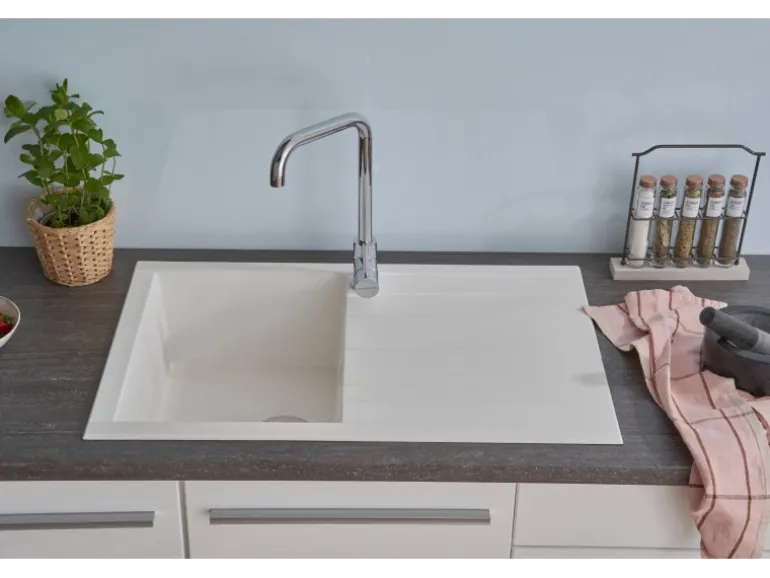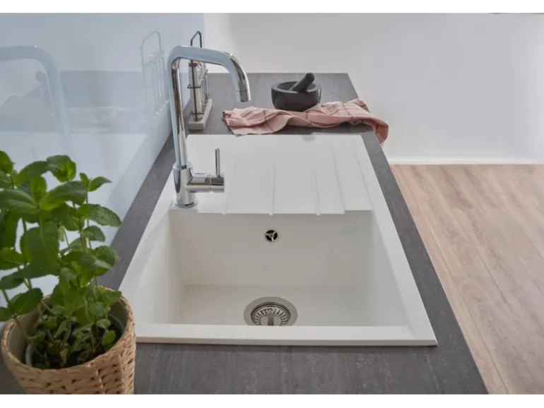 + Mineraliteinbauspüle mit 1 Becken und Abtropffläche