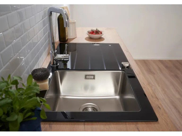 Glas Spüle mit 1 Becken und Abtropffläche
