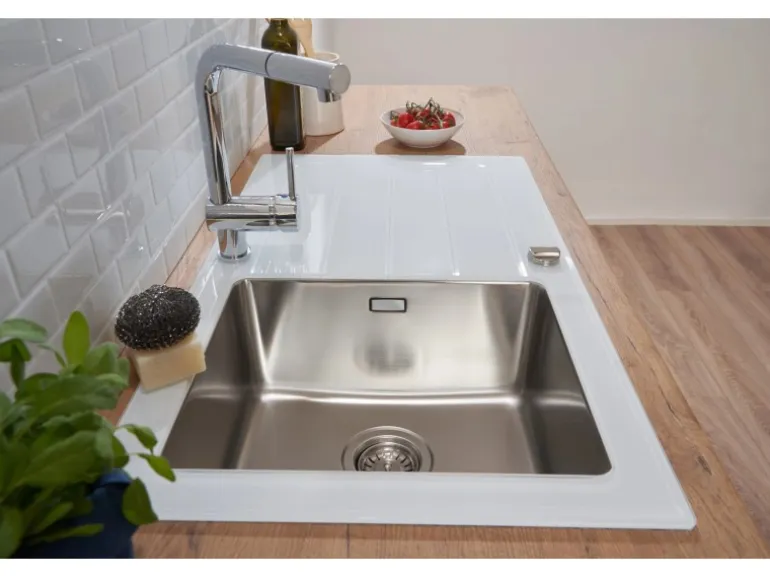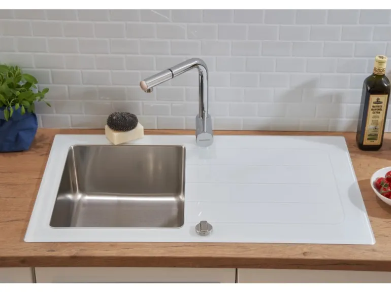 Glas Spüle mit 1 Becken und Abtropffläche
