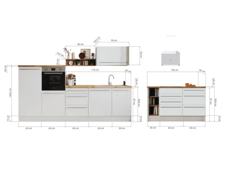 1 Hochschrank für Backofen 60 cm, Gesamthöhe 145 cm