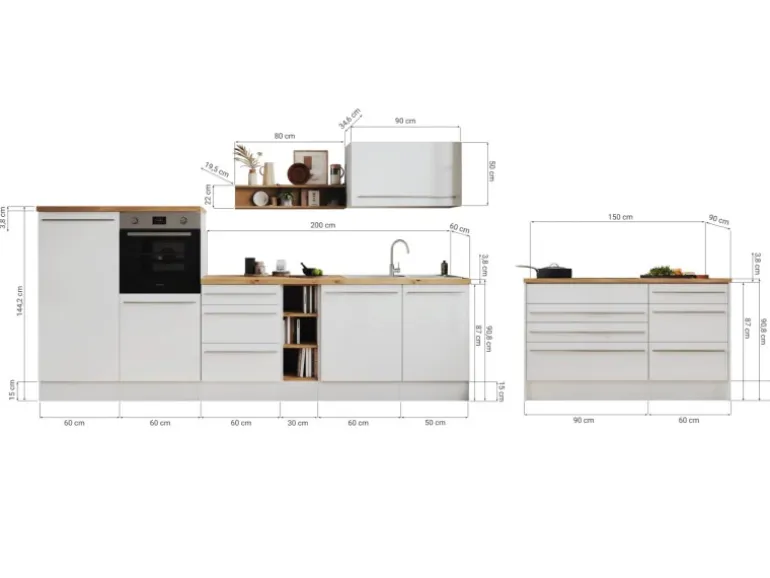 1 Kochfeldunterschrank mit Schubladen 90 cm