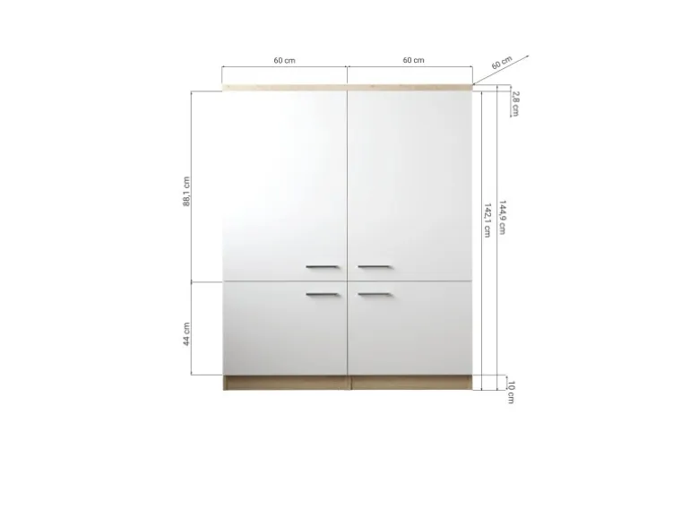 + Materialstärke der Fronten und Korpus: 16 mm