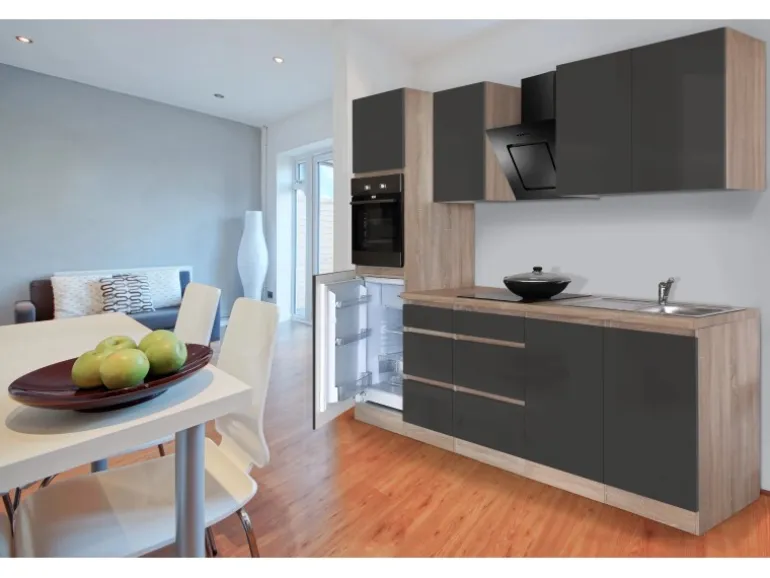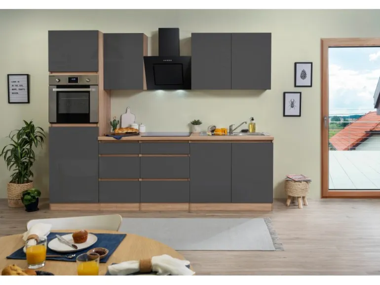 Die Respekta Premium Küchenzeile GLRP270HESG besteht aus (HxBxT):