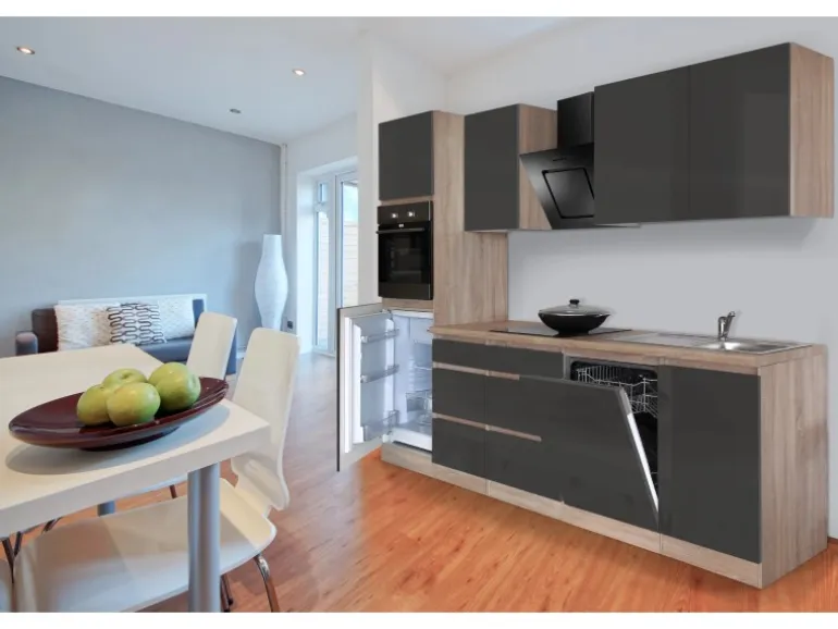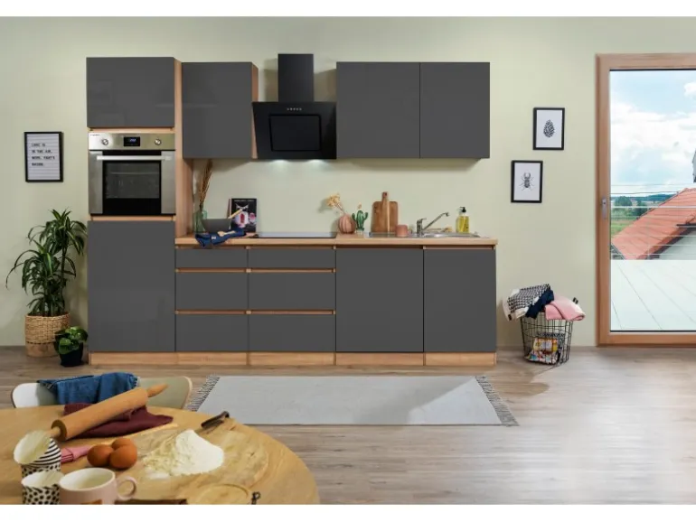 Die Respekta Premium Küchenzeile GLRP280HESG besteht aus (HxBxT):