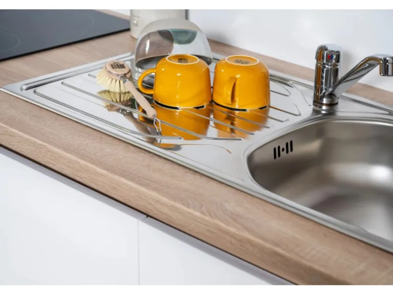 Einbauspüle Edelstahl mit Ab- und Überlaufgarnitur: 86 x 43,5 cm