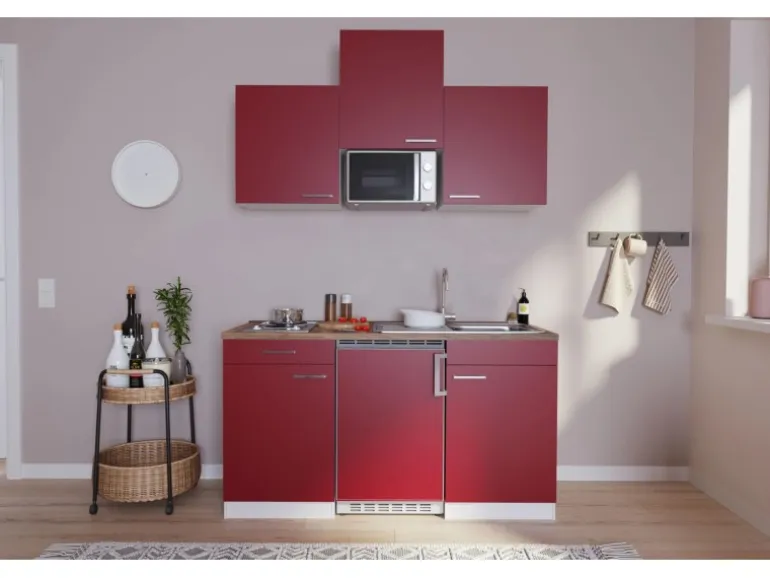Mit einer Gesamtbreite von 150 cm ist die Küche ideal für das Büro, die Single- oder Studentenwohnung. Der Unterschrank mit Schublade und die drei Oberschränke bieten genügend Platz für Gläser und Geschirr.