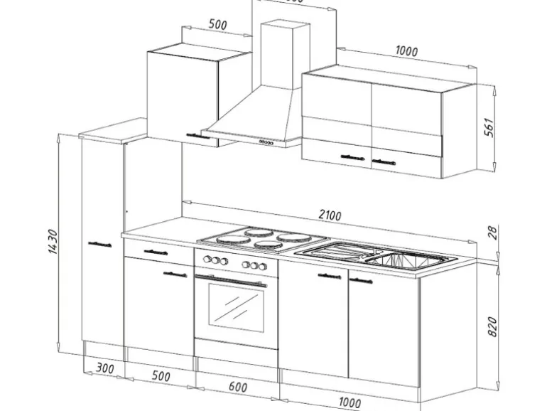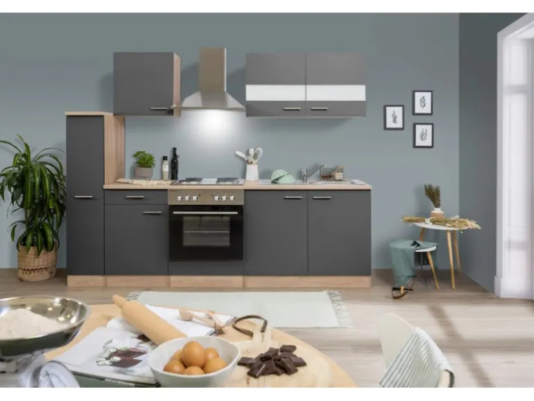 Die Respekta Küchenzeile besteht aus (HxBxT):