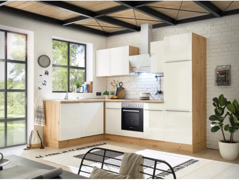 Mit Einbau Herd-Set EEK: A mit rahmenlosem Glaskeramikkochfeld und moderner Schräghaube EEK: A