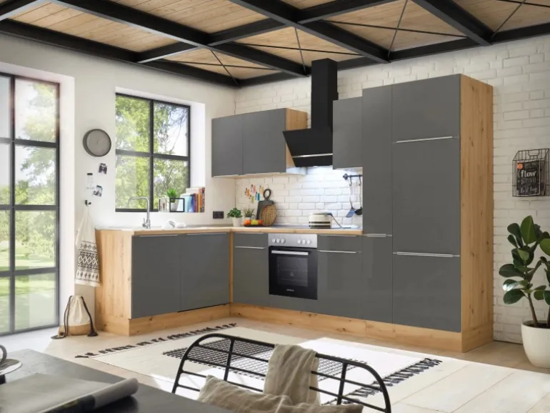 Mit Einbau Herd-Set EEK: A mit rahmenlosem Glaskeramikkochfeld und moderner Schräghaube EEK: A