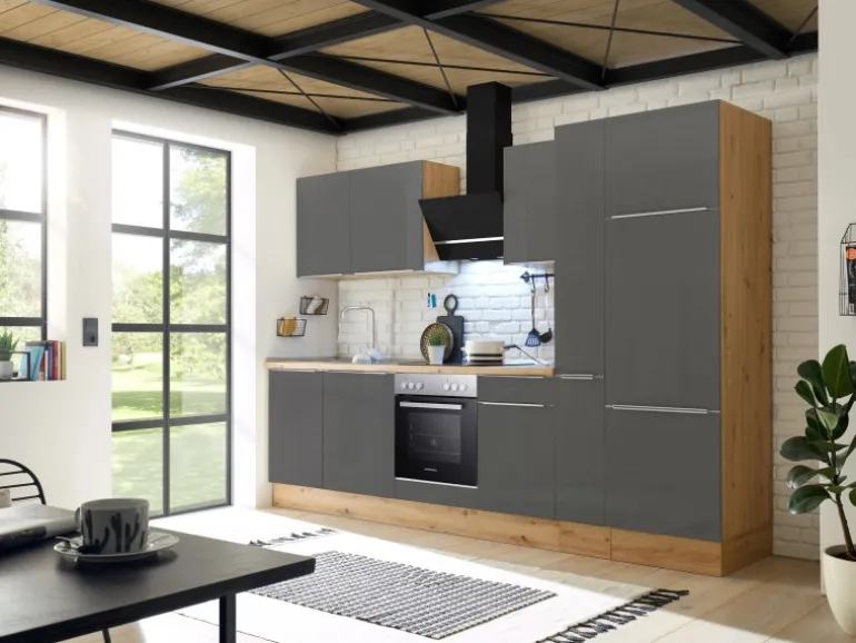 Mit Einbau Herd-Set EEK: A mit rahmenlosem Glaskeramikkochfeld und moderner Schräghaube EEK: A